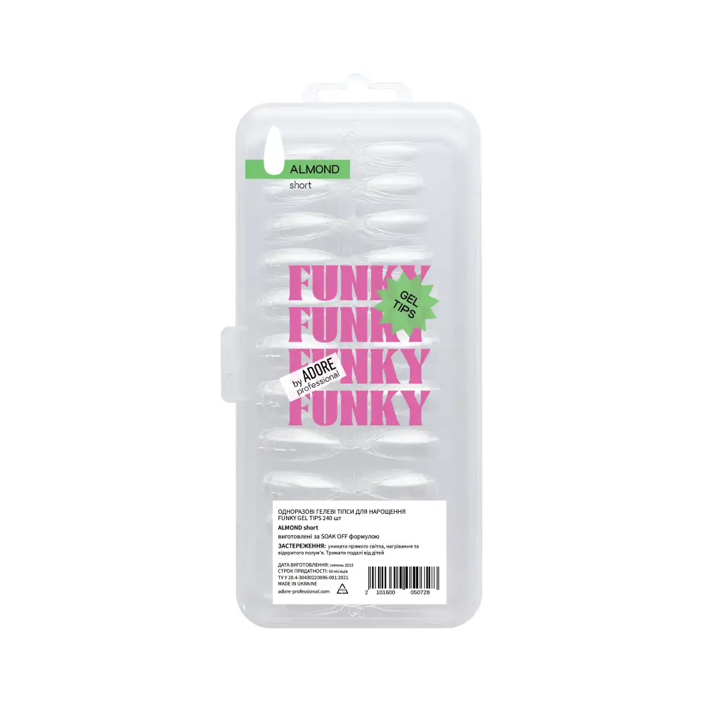 FUNKY GEL NAIL TIPS – dünne, aber starke und flexible Tips auf Basis von Modelliergel und Kunststoff. Sie halten alltäglichen Belastungen gut stand, ziehen gut ein und unterscheiden sich optisch kaum von natürlichen Nägeln. Hergestellt nach der SOAK-OFF-Formel, eignen sie sich zum Entfernen sowohl durch Einweichen mit GEL REMOVER als auch durch Fräsen. Die Tips lassen sich leicht sägen und in der Länge verändern.