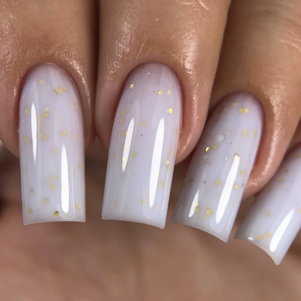 UV/LED BB-Creme-Basis 04L Sea Pearl – ein milchig-weißer Farbton mit mittlerem Ton und goldenen Mikropartikeln. Dies ist eine einfache, aber nicht langweilige Option – dank des leichten Schimmers sieht sie auf den Nägeln sehr zart aus. Sie betont gepflegte Hände und verleiht dem Look eine exquisite Frische.