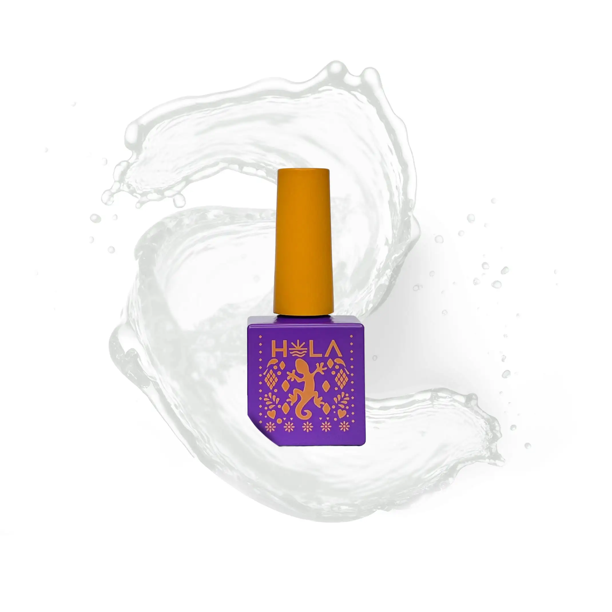 Entdecken Sie HOLAs Velo Blanco Top Coat – einen einzigartigen, milchig-weißen Hybrid-Überlack, der mit seinem zarten, romantischen Effekt und seiner unvergleichlichen Qualität begeistert. Verpackt in einer neuen, eleganten, violetten Verpackung mit Eidechsenmotiv und den ikonischen HOLA-Mustern, ist dieser Überlack die perfekte Wahl für alle, die eine anspruchsvolle, nicht klebende Maniküre lieben.